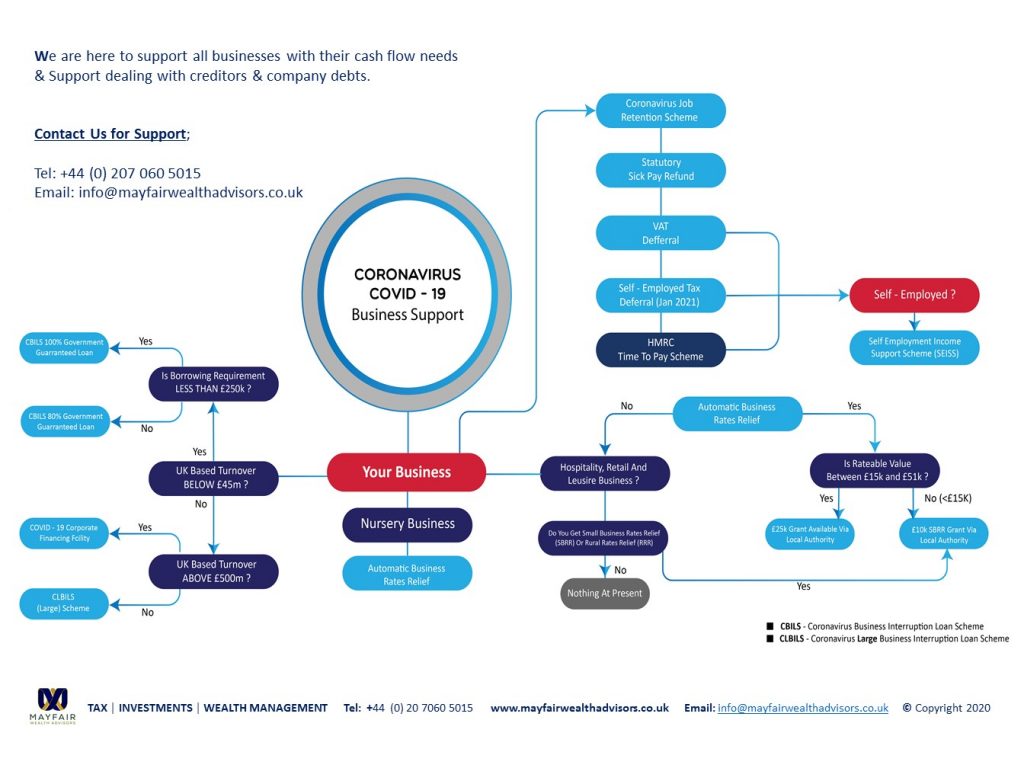 We are here to help support business with company debts, and helping with cash flow. Below is support from the UK government, we have summarised to make it easier to see your options;